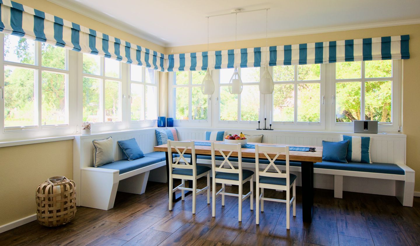 Exklusive Gemütlichkeit trifft auf moderne Ausstattung und viel Raum zum Durchatmen: Das Haus Meerblau, ein reetgedecktes Darßer Kapitänshaus, bietet bis zu sechs Personen Komfort, Ruhe und eine private Wellnessoase mit großer Klafs-Sauna.