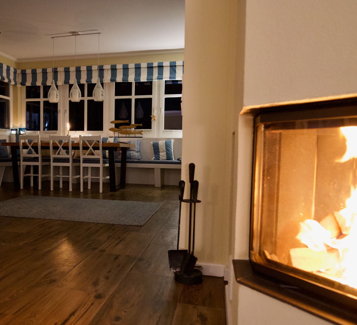 Mit viel Liebe zum Detail wurde das Haus Meerblau zu einem hochwertigen Ferienhaus verwandelt. Kamin und Fußbodenheizung sorgen im Wohnhaus für wohlige Wärme, hochwertige Boxspringbetten für erholsamen Schlaf. Die moderne Küche ist bestens ausgestattet – mit Induktionsherd, Nespresso-Maschine und allem, was gemeinsames Kochen zum Genuss macht. BOSE SoundTouch, WLAN und eine stilvolle Einrichtung runden den hohen Wohnkomfort ab. Auf einem rund 1.100 qm großen Süd-West-Grundstück verteilen sich 135 qm Wohnfläche im Haupthaus sowie weitere 35 qm im separaten Saunagebäude – ideal für entspannte Urlaubstage mit Familie oder Freunden. Ob Sie am Kamin lesen, auf dem Sofa verweilen, sich der Kunst im Haus widmen, gemeinsam am großen Esstisch spielen oder nach dem Saunagang im Wellnesshaus den Sonnenuntergang genießen – hier findet jede Stimmung ihren Raum. Born a. Darß hat sich den Charme eines alten Fischerdorfs bewahrt. Reetgedeckte Häuser, gewundene Wege und immer wieder der Blick auf das gleißende Blau des Boddens prägen das Ortsbild. Zentral auf dem Darß und direkt am Nationalpark gelegen, ist Born der ideale Ausgangspunkt: zu den Stränden von Prerow, zur wilden Schönheit des Weststrands, für Spaziergänge über den Borner Holm oder für Radtouren entlang der Boddenwiesen. Auch kulturell hat der Darß viel zu bieten. Als traditionsreiche Künstlerkolonie lockt die Region mit Galerien, Museen, Auktionen, Konzerten, Festivals und gelebtem Brauchtum wie dem Tonnenabschlagen – zu jeder Jahreszeit inspirierend und lebendig.